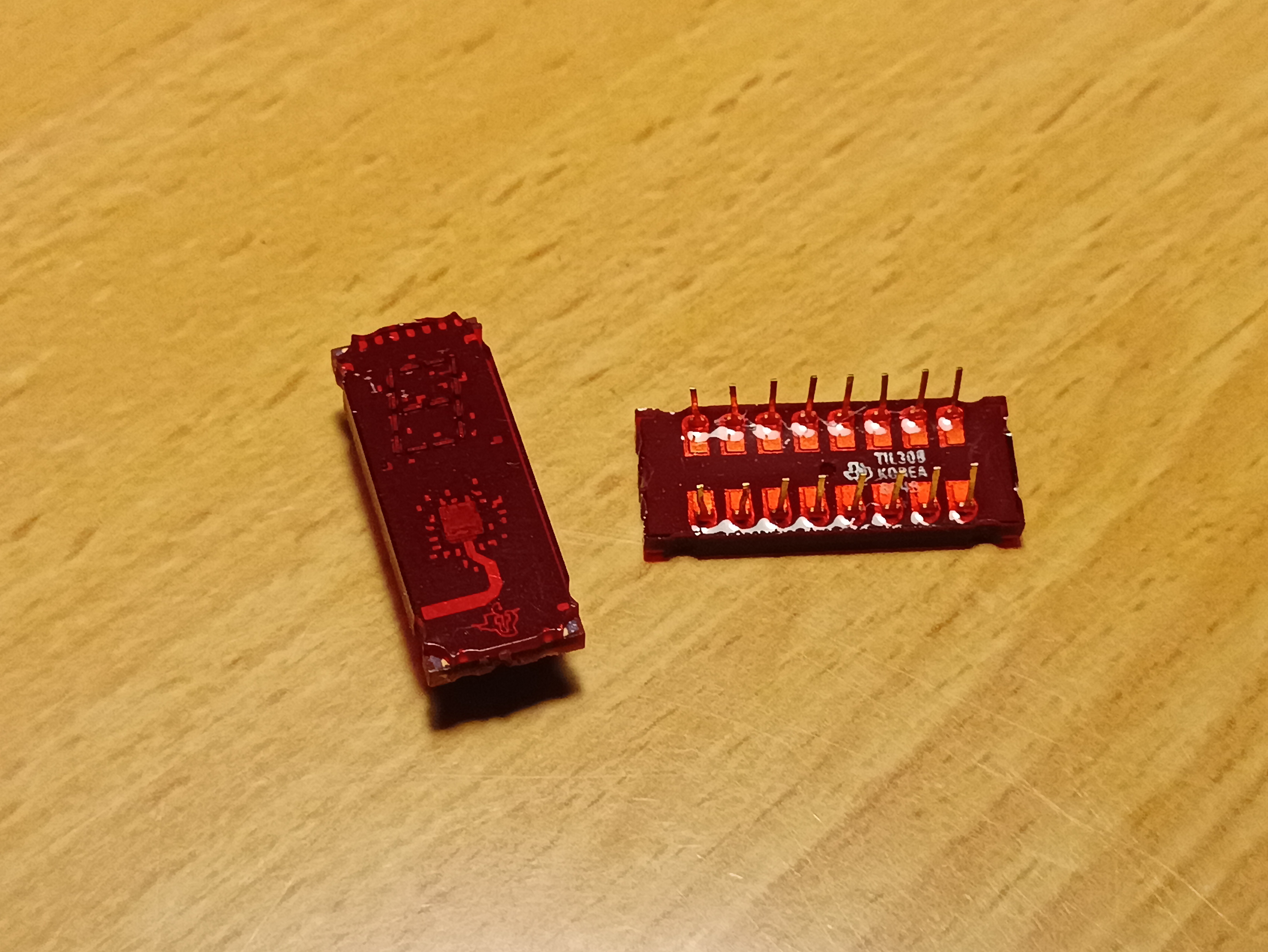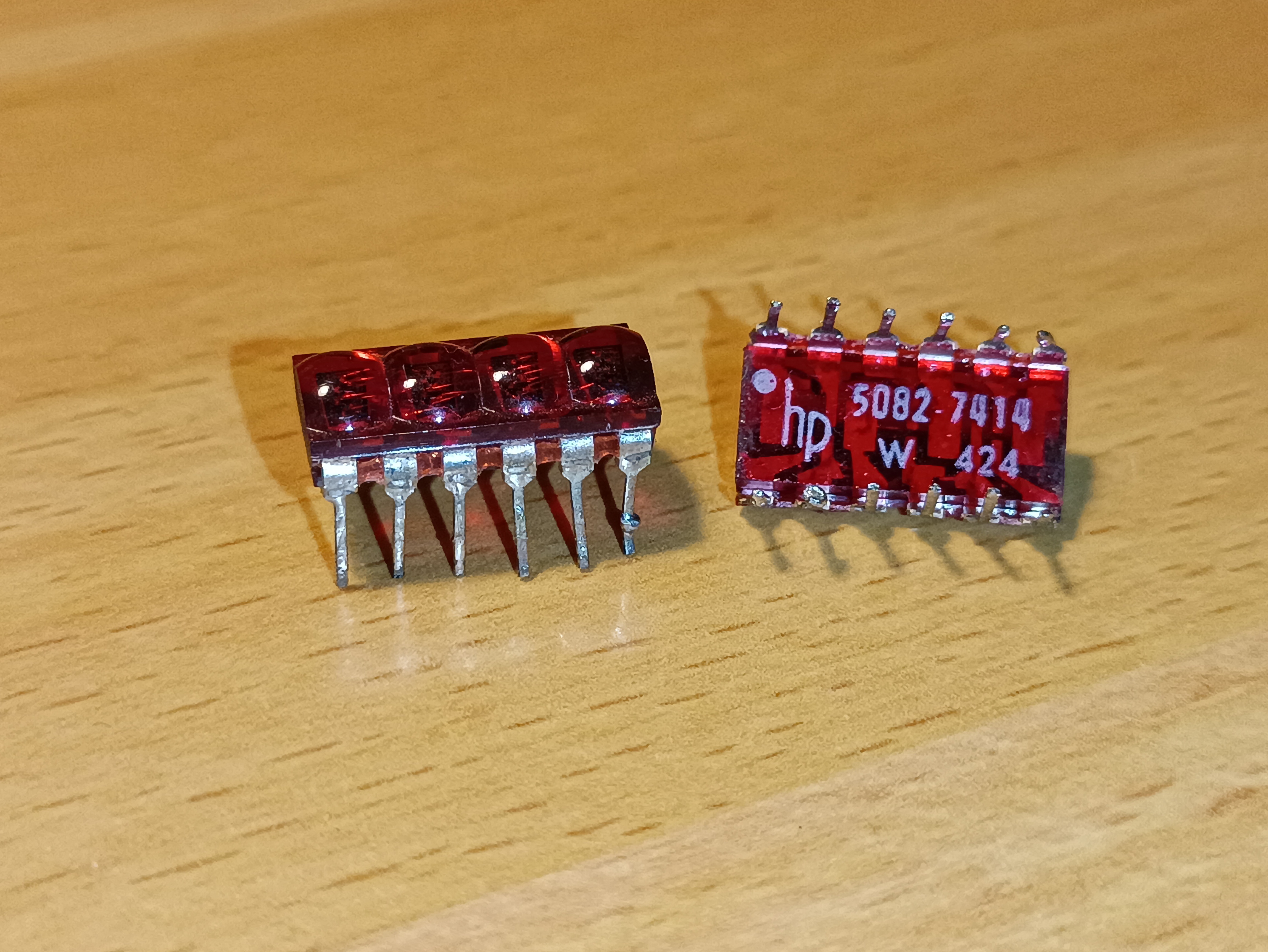 A functional equivalent to the TIL311. A hex display with 4-bit BCD data input, and can display hex digits 0 through F, representing the bit sequence at the input. These consume a constant