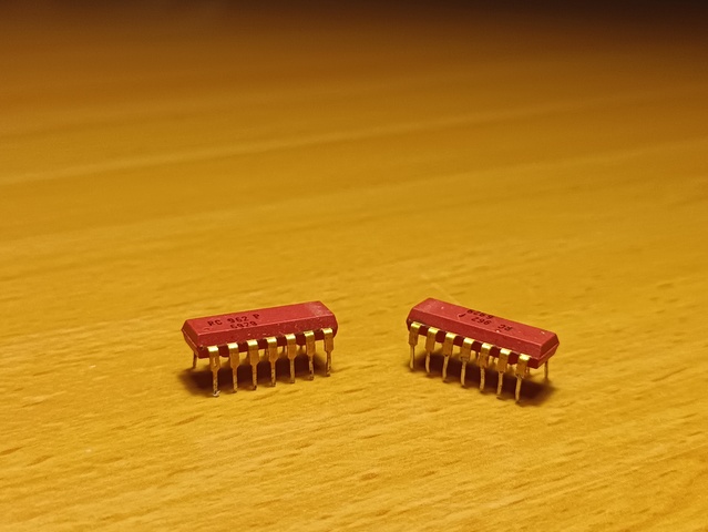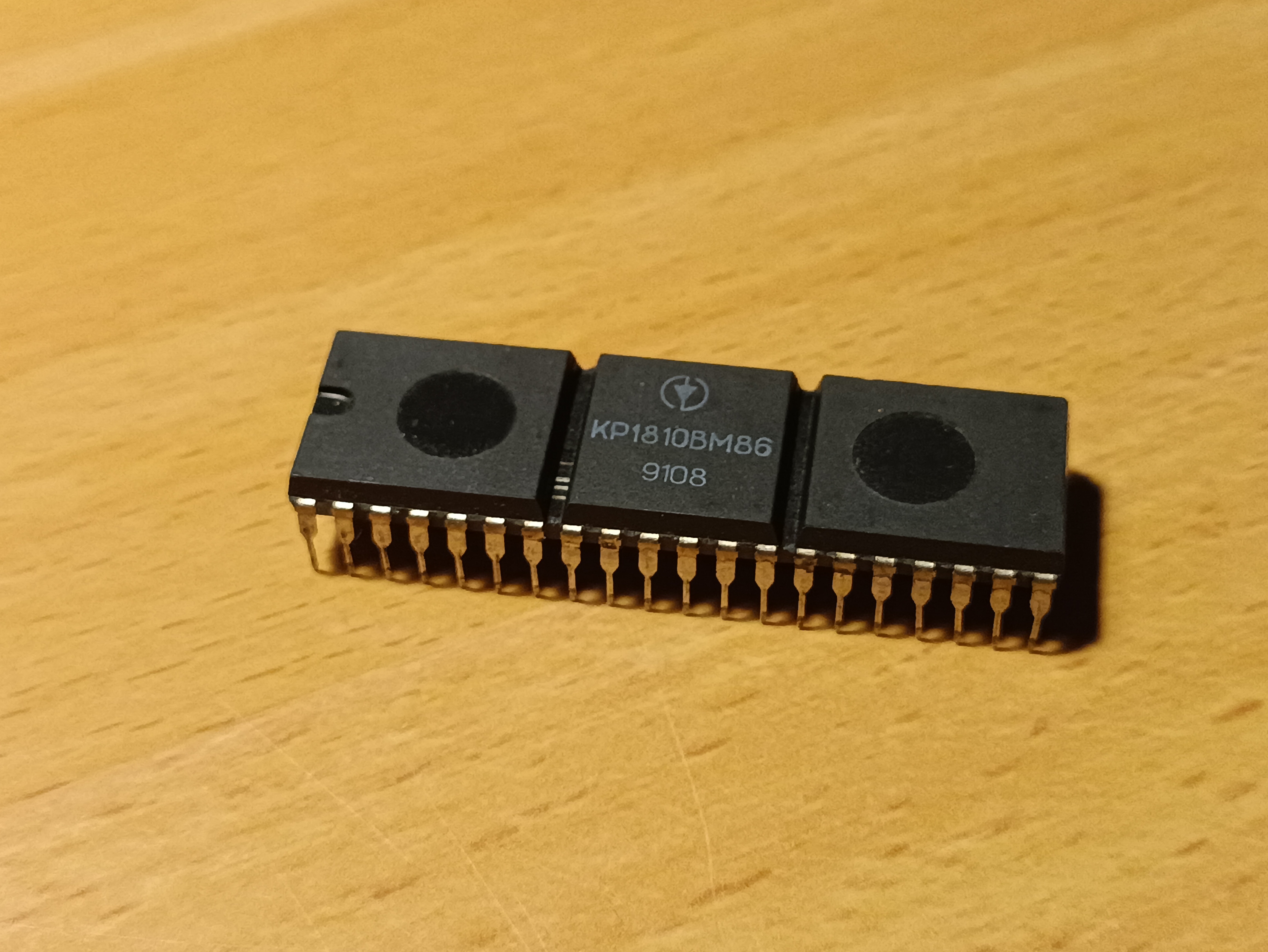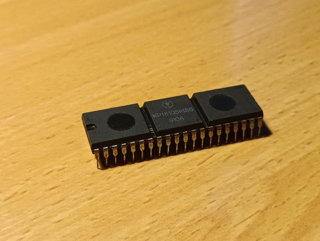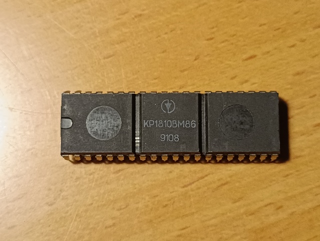 Soviet clone of the Intel 8086 CPU. Pin and binary compatible with the i8086. Has a 2.50mm pin pitch, instead of the much more common 2.54mm pin pitch of the west, making it a poor fit in breadboards and chip sockets.