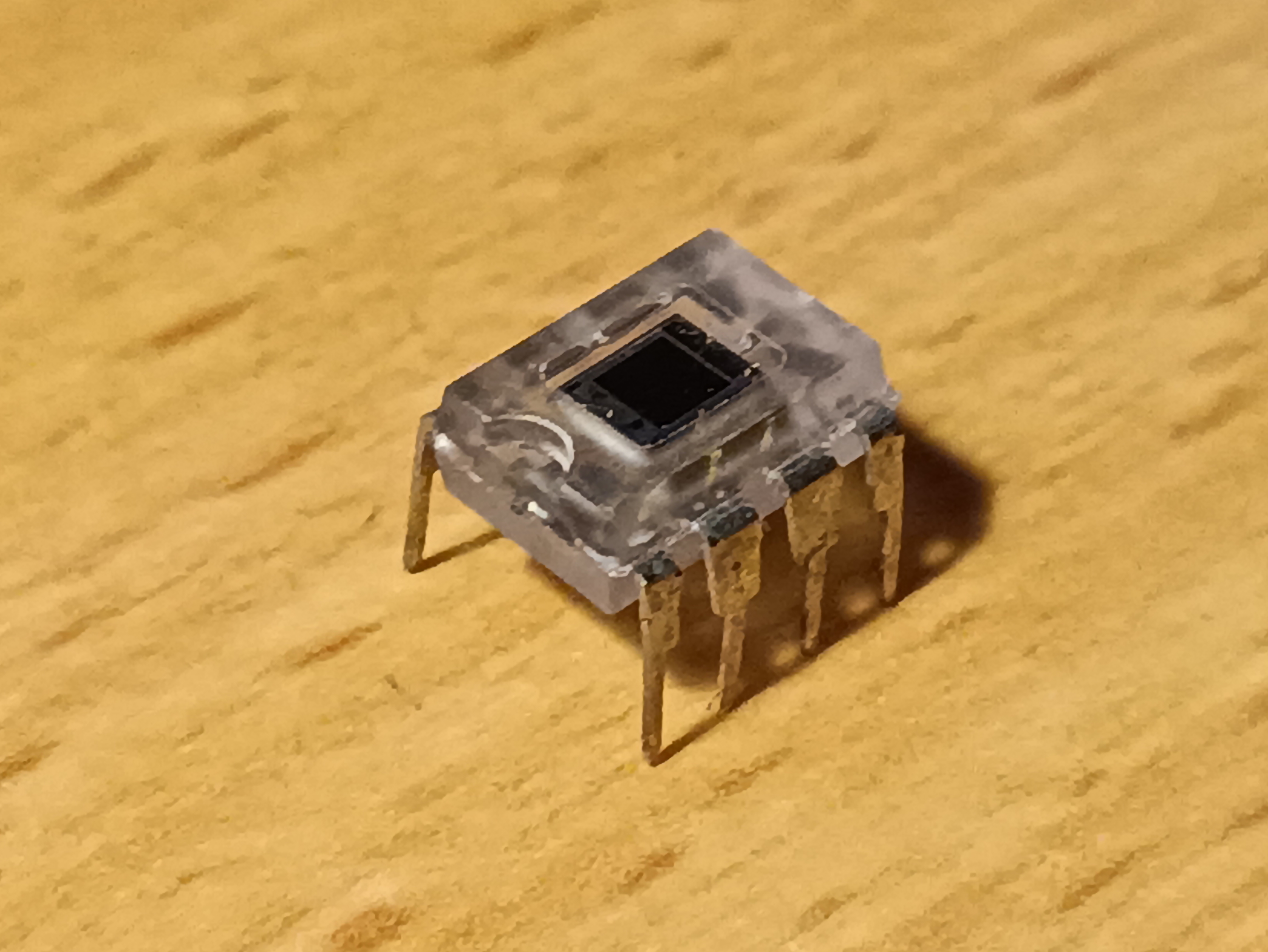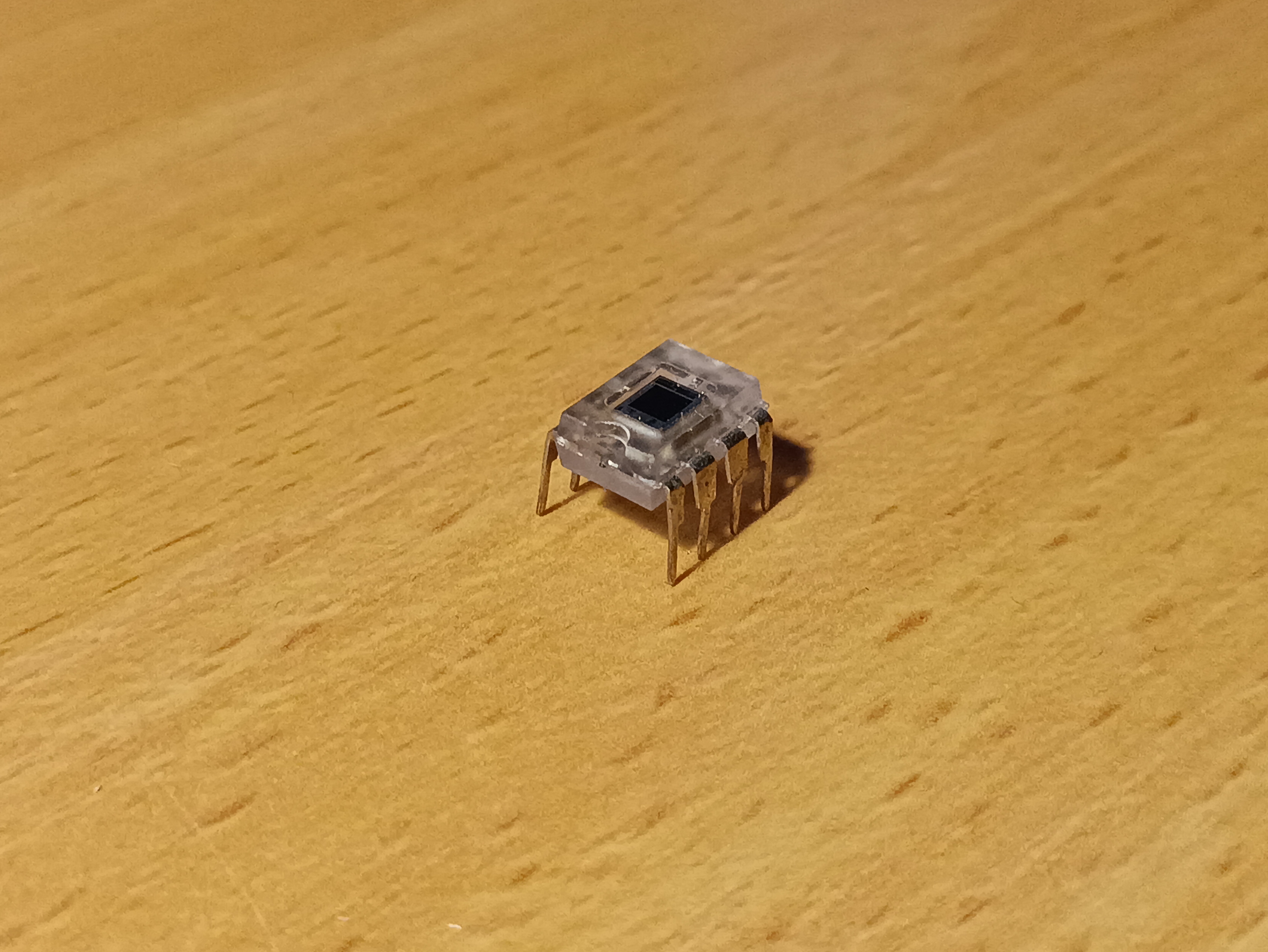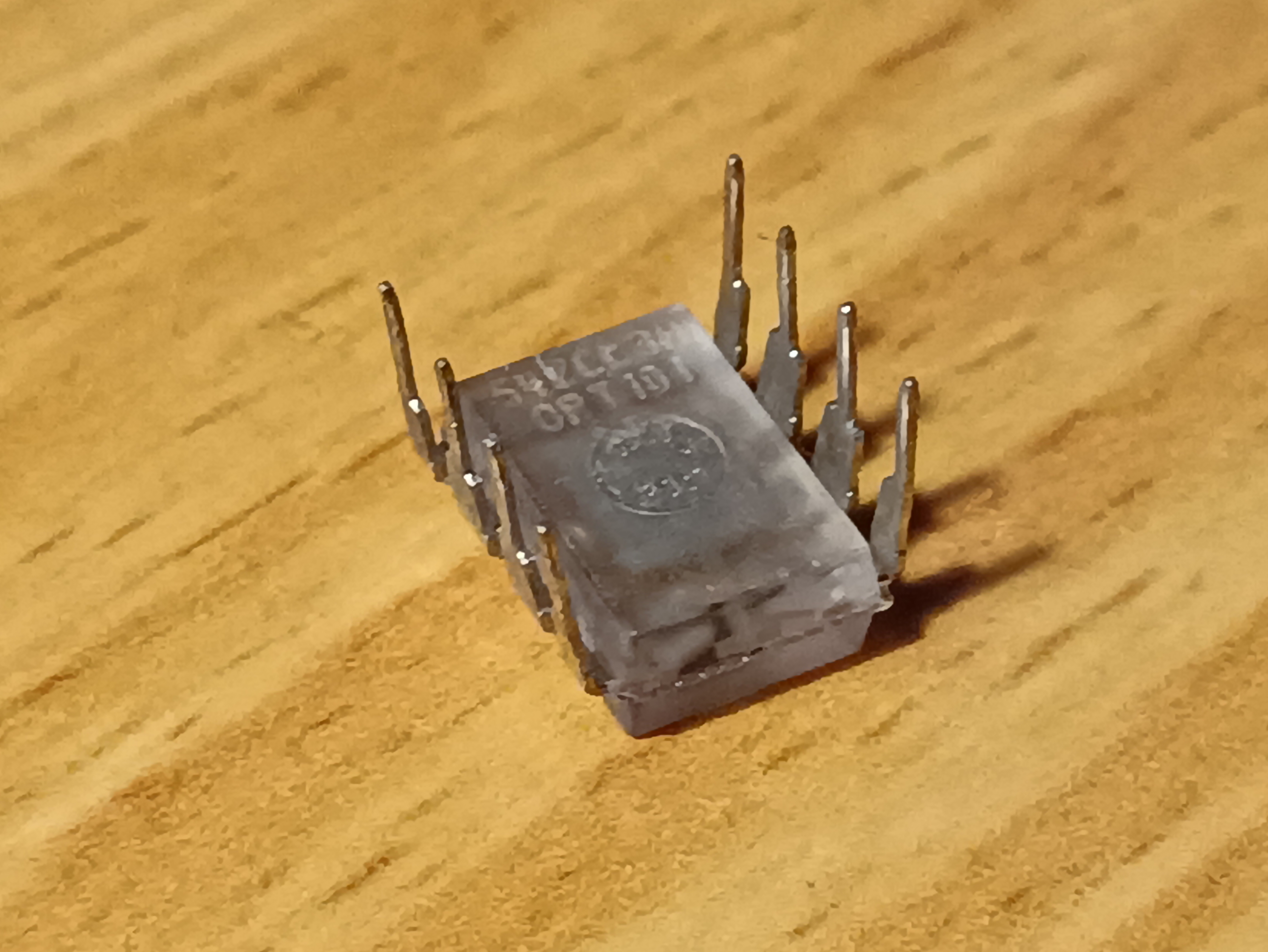 Photodiode and transimpedance op-amplifier in one transparent DIP-8 package. Outputs a voltage level proportional to incident light.