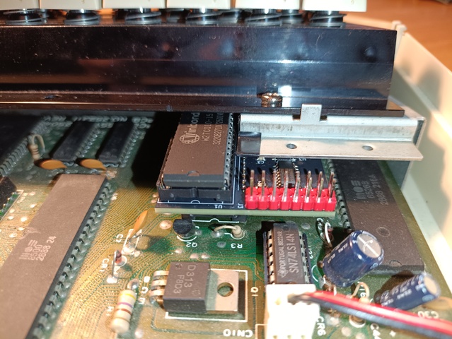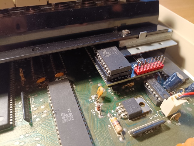 Kernal and character ROM banks are binary-numbered. On the board is a pin header with a series of pins labelled F0 to F3 and K0 to K2. Open pins are high by default due to pull-up resistors. To set a low state, close a a pin pair with a jumper or otherwise.