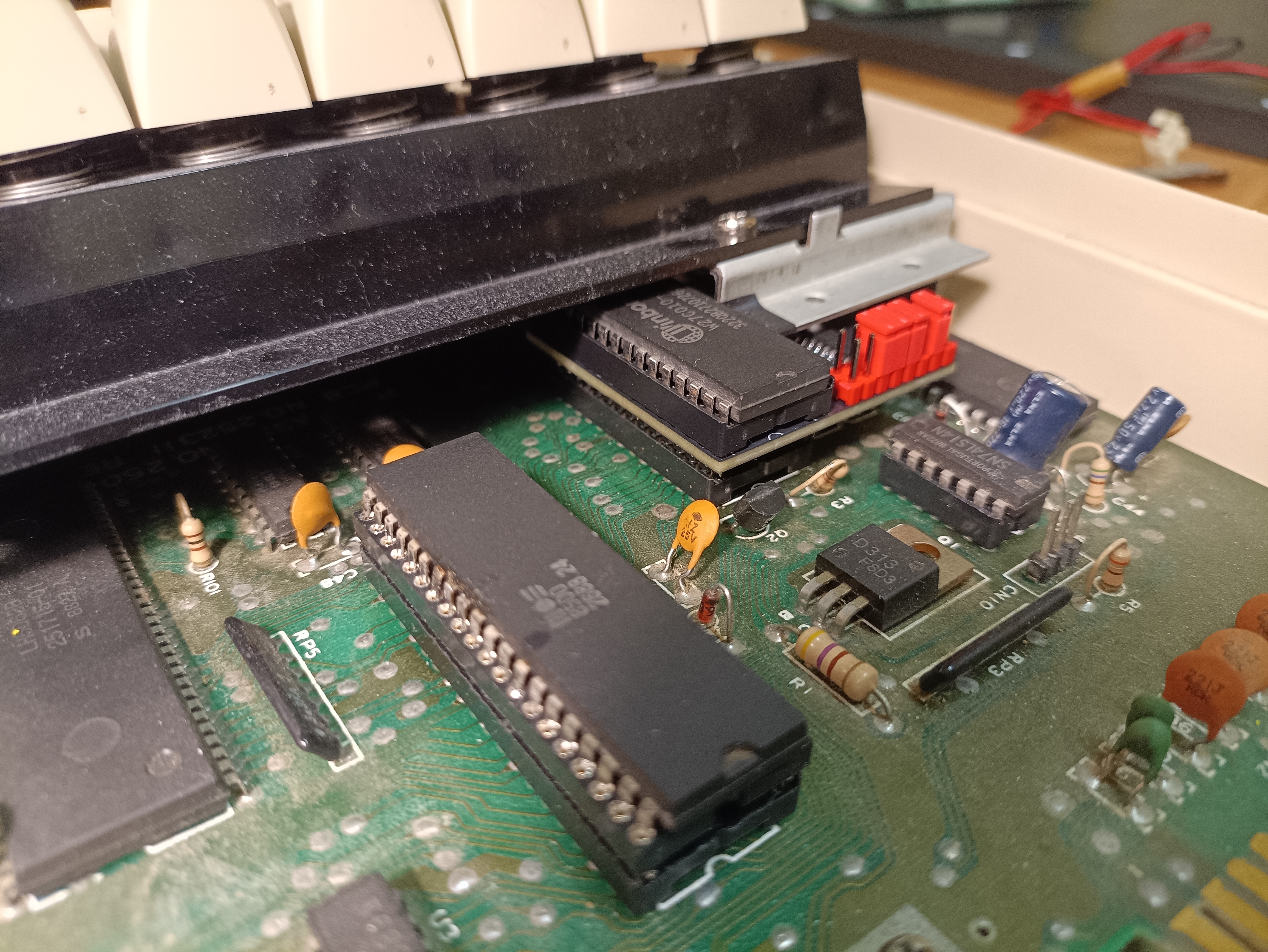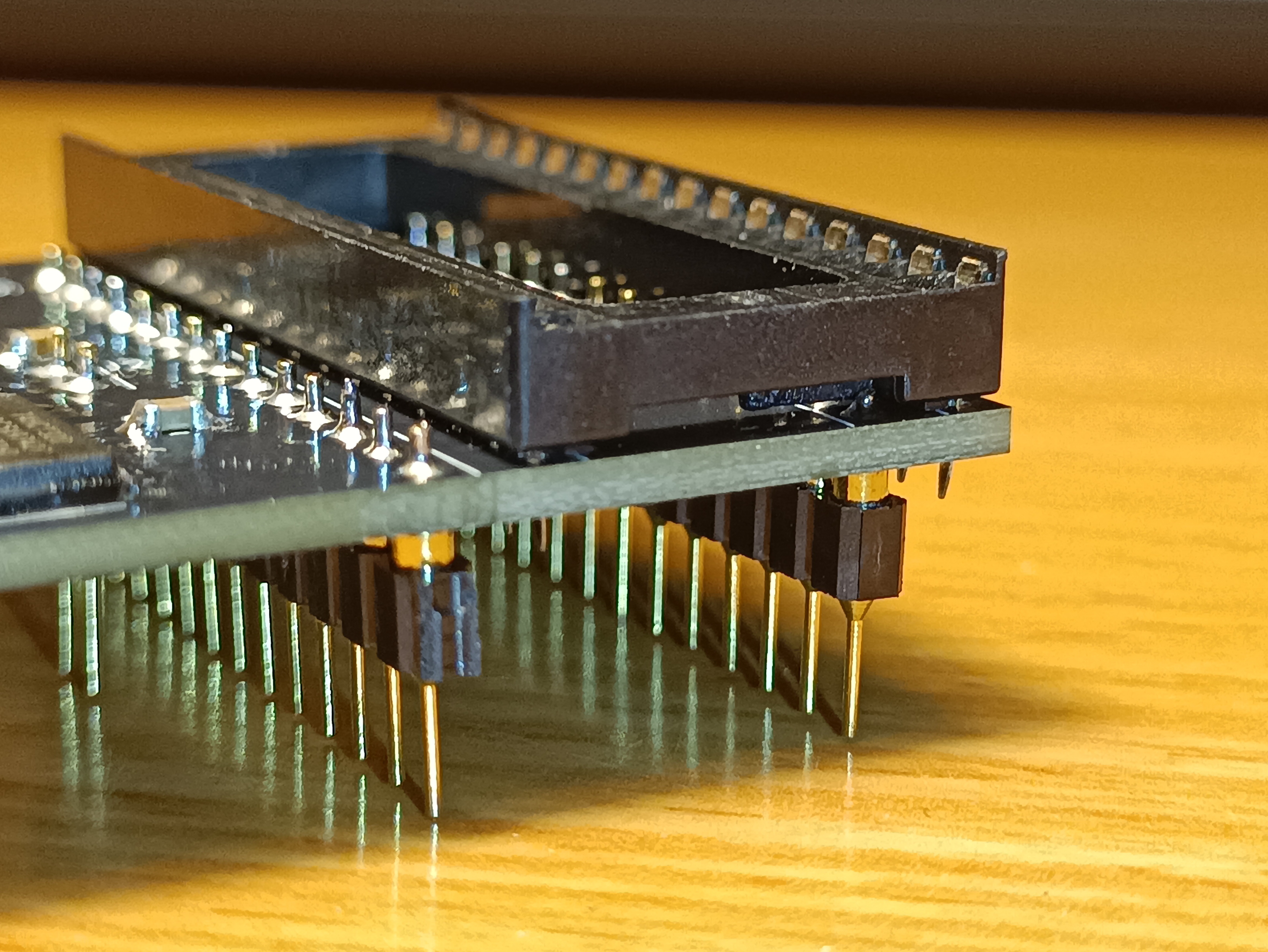 - Cut down the bottom right corner pin's solder joint, as it may collide with the DIP socket